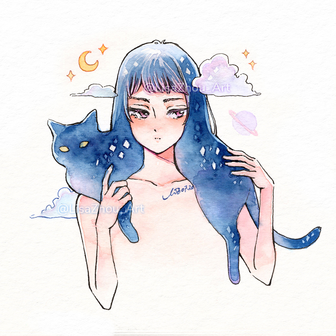 1 8 黒猫少女 #手绘 #水彩 #cute #黒猫 #少女 #kawaii #アナログ #蓝色 #原创 #落書き pixiv.net/artworks/83080… 20/07/19 20:05