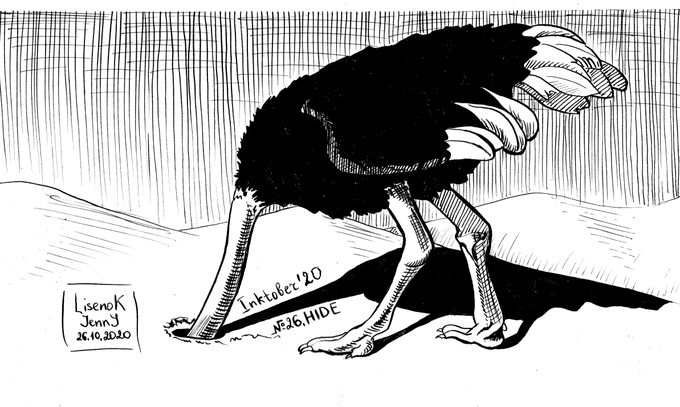 An ostrich hides its head in the sand Art © LisenokJenny #LisenokJenny #Inktober #Inktober2020 #ostrich #drawing #illustration #art #sand #Hide #InktoberHide