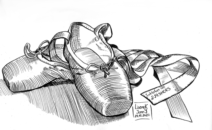 Pointes Art © LisenokJenny #LisenokJenny #Inktober #Inktober2020 #pointes #drawing #illustration #art #shoes #InktoberShoes