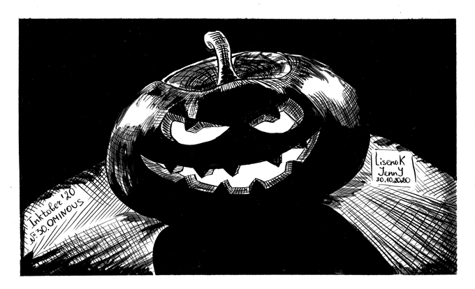 Jack-o'-lantern Art © LisenokJenny #LisenokJenny #Inktober #Inktober2020 #Ominous #Halloween #illustration #art #pumpkin #InktoberOminous #Jack_o_lantern