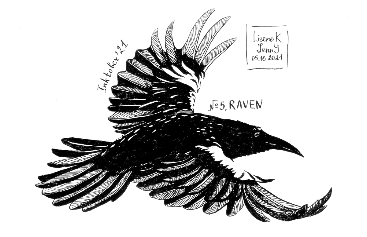 Black raven Art © LisenokJenny #LisenokJenny #Inktober #Inktober2021 #raven #crow #everydaysketch #InktoberRaven