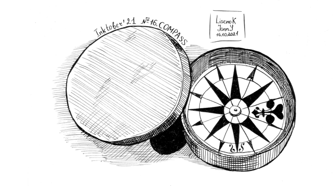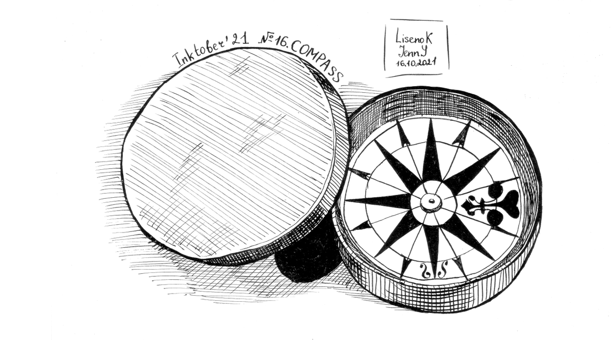 Compass Art © LisenokJenny #LisenokJenny #Inktober #Inktober2021 #compass #everydaysketch #InktoberCompass