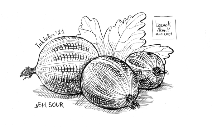 Gooseberry Art © LisenokJenny #LisenokJenny #Inktober #Inktober2021 #sour #gooseberry #everydaysketch #InktoberSour