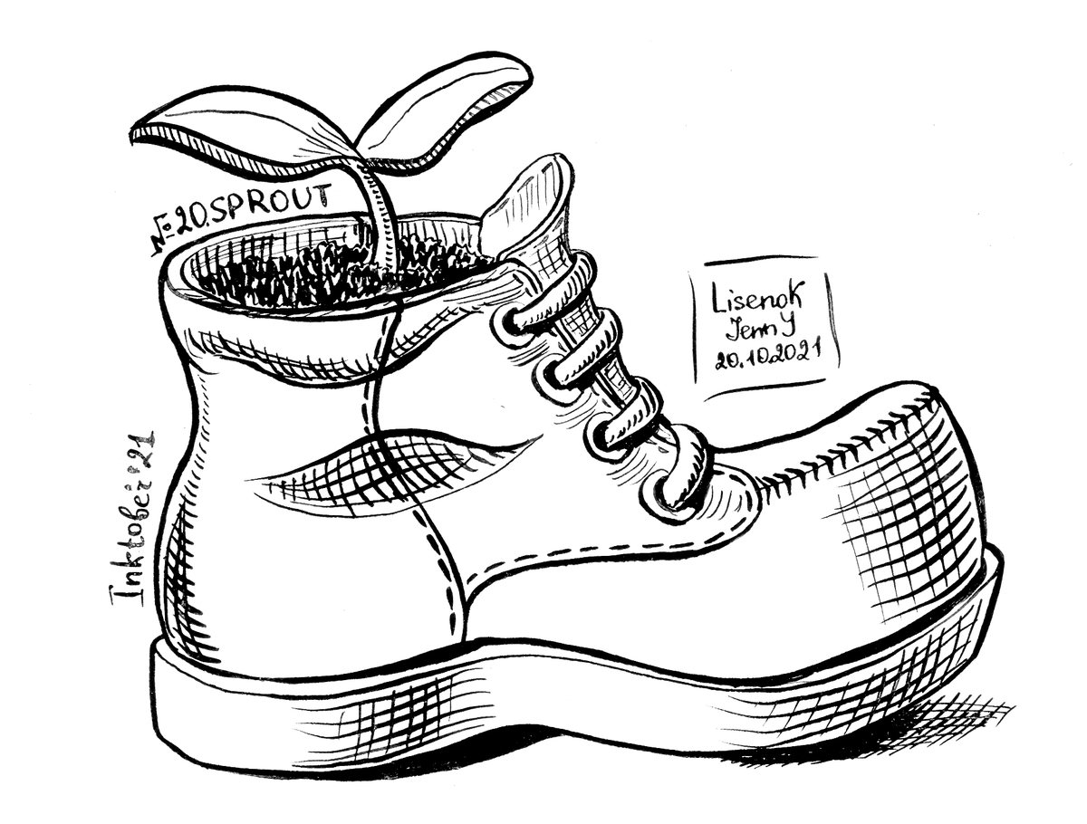 The sprout in the shoe Art © LisenokJenny #LisenokJenny #Inktober #Inktober2021 #sprout #shoe #everydaysketch #InktoberSprout