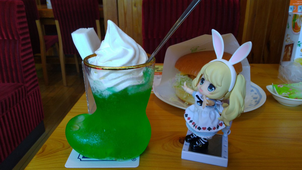 1 6 コメダ珈琲来てます 「クリームソーダでけえ!」 #キューポッシュ 19/05/24 14:32