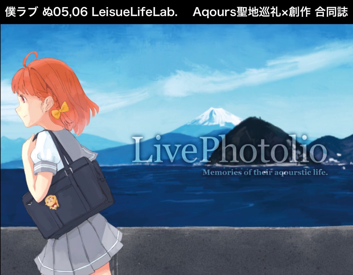 僕ラブ サンシャイン沼津にて新刊出します! 沼津の聖地巡礼の写真にイラストやSSなどの創作を合わせた写真×創作の合同誌です。 是非手に取って頂けると嬉しいです。 #LivePhotolio