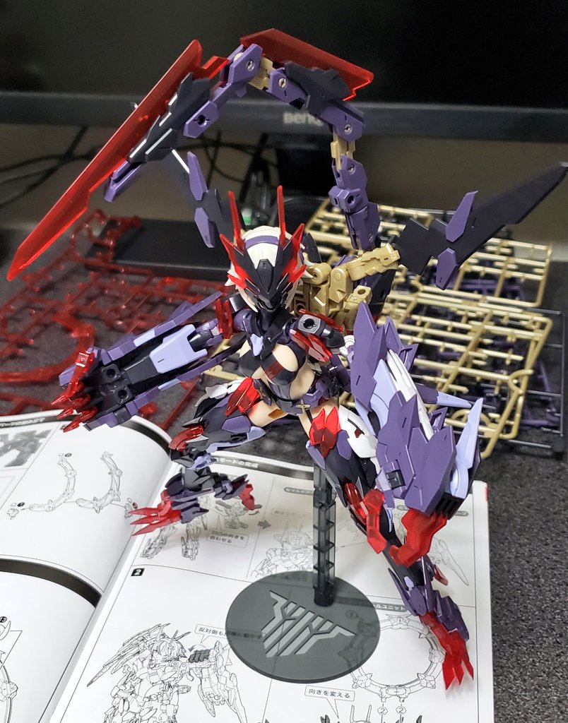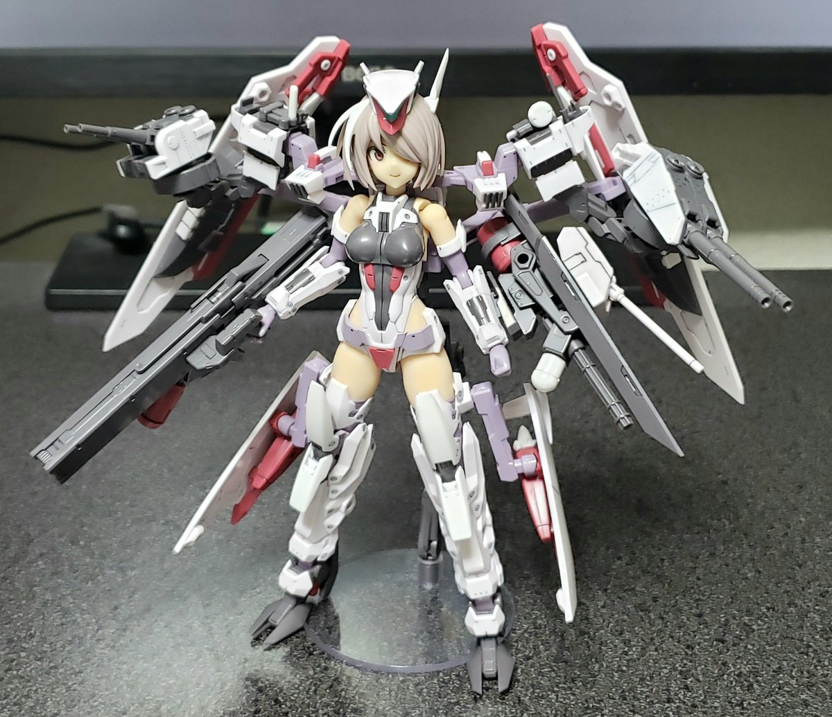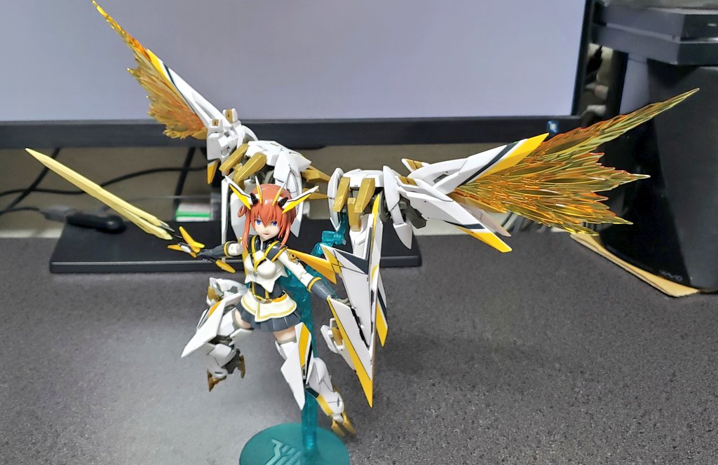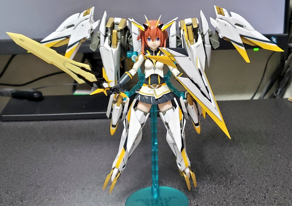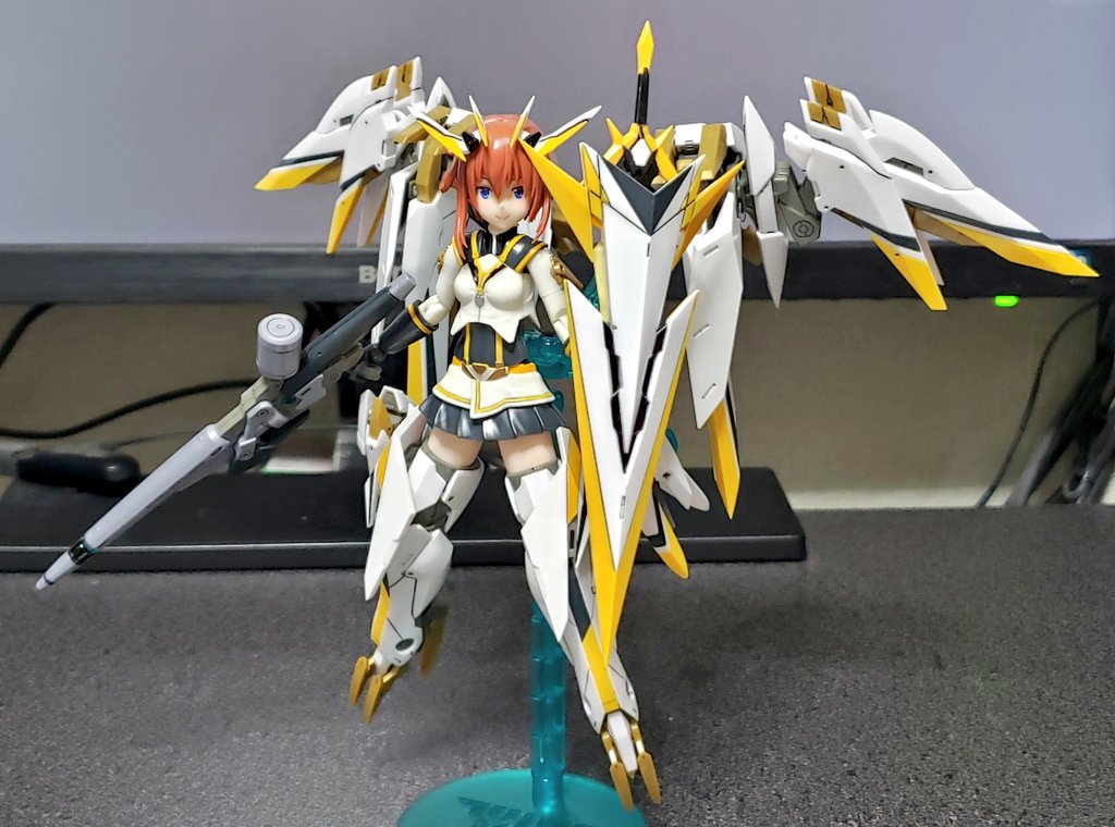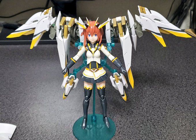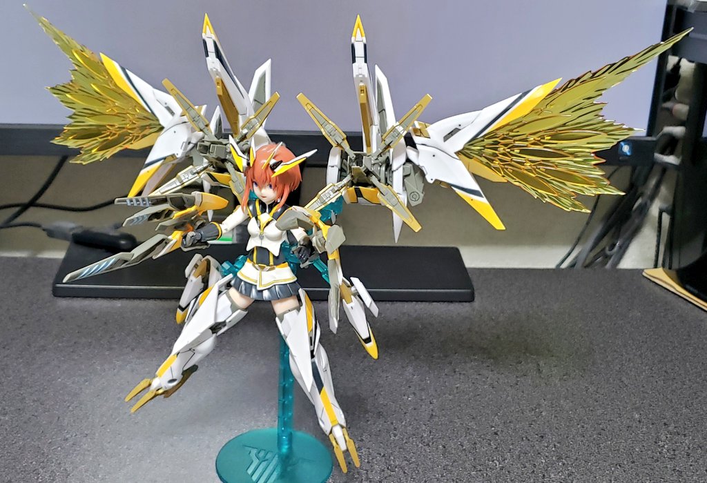 0 4 トップスギア出来た 位置バランス確認で付けてみたが スタンドがノーマルだから超ぐらぐらしてるw 金曜には完成するかな #メガミデバイス #アリスギア 22/07/05 23:05