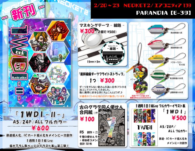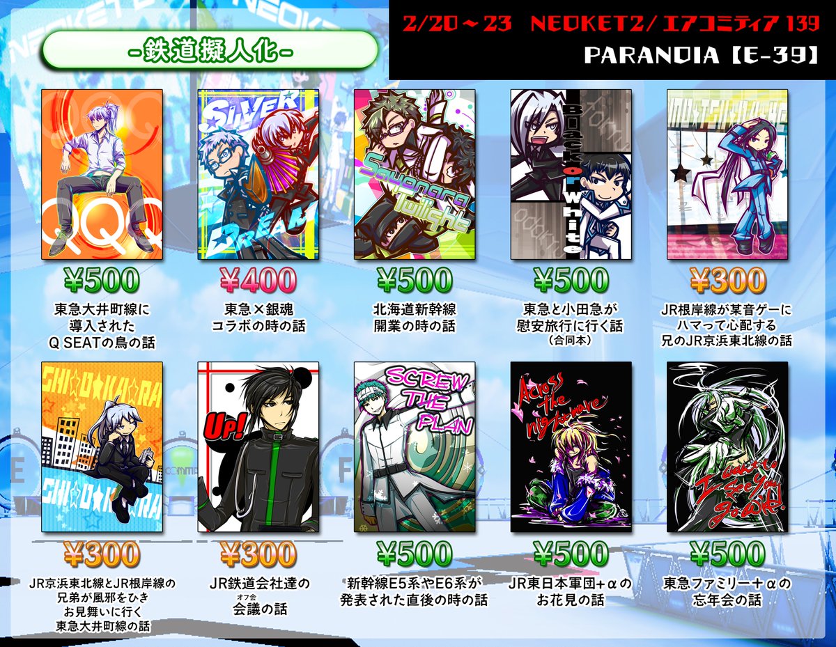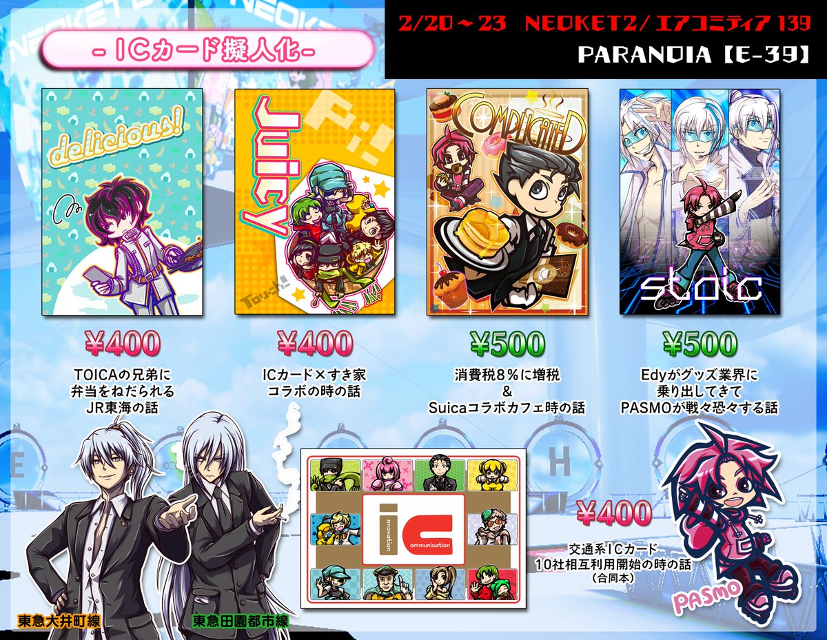 2/20~23開催の #NEOKET2 と #エアコミティア139 に参加します! PARANOIA【E-39】#鉄道擬人化 #ICカード擬人化 メインな創作スペース neoket.net 新刊は2/20から頒布開始☆ litbi.booth.pm コアタイムはなるべくスペースにいるようにします。 お話しましょう~!!