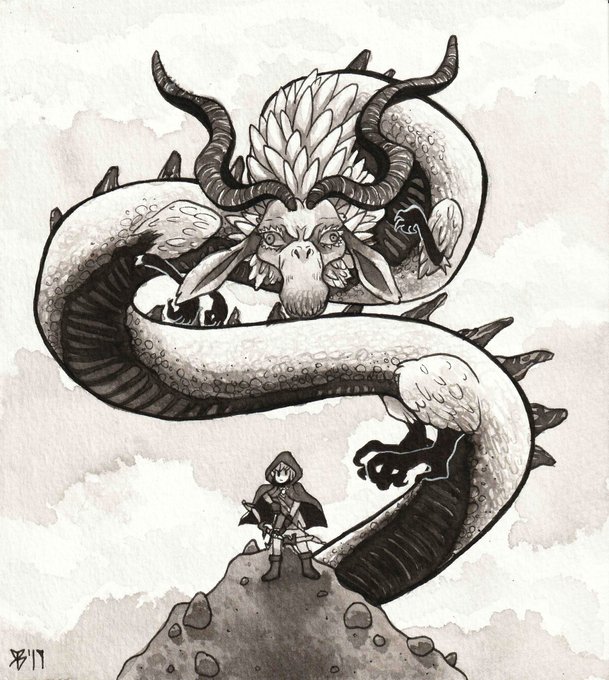 Inktober Day 12: Dragon I was going to post it last night, but I didn't get done with it until the wee hours of the morning . #traditionalart #character #characterdesign #art #ink #drawing #illustration #lineart #inktober #inktober2019 #zelda #link #botw #breathofthewild