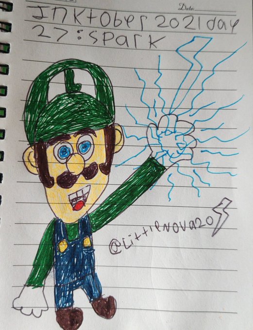 ⚡⚡Thunder Hand.⚡⚡ (Inktober 2021 day 27: Spark.) #inktober2021 #Inktober #Spark #Luigi #SuperMario #Inkpen