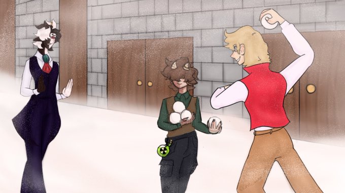 Celebrating Christmas w/ a snowball fight! this is a very special gift for @pinknova22 (and you should totally go follow them!) [#DSMPArtSanta2021 #dsmpfanart #ranboofanart #tommyinnitfanart #tubbofanart #dsmp]