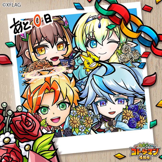 コトダマン4.5周年オメデトー!今回はユーキ、ウタイ、シノブ、コーシュを担当させていただきました!いつもより女の子多めに描かせてもらったぞ~~!次は5周年に向けて突っ走っていきましょう!! twitter.com/kotodaman_pr/s… #コトダマン #コトダマンいいね