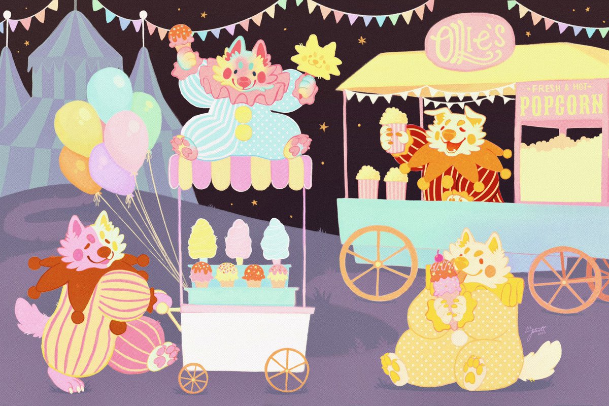 ✨#artvsartist2022 🌱 . The only picture y’all are gonna get of me for a year HA. Orange and green tones seem to be the theme this year, and clowns of course. Even though I didn’t create a ton this year I’m still super happy with what I made! Can’t wait to start work for 2023!