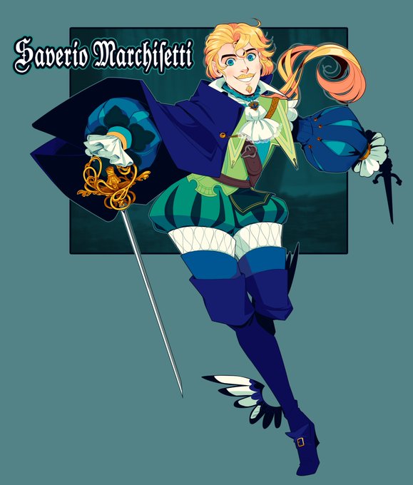 Thought maybe I could whip something up in time for the #ocgala2022 thing last week and, while I figured out the design, I certainly didn't make it, now did I? Ah well, at least I got a new campy Saverio outfit of it~ Bonus late Sav
