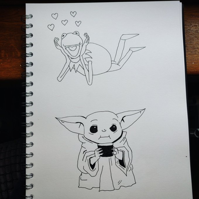 0 1 It's not easy being green💚 #kermit #babyyoda #Inktober 20/10/18 23:55