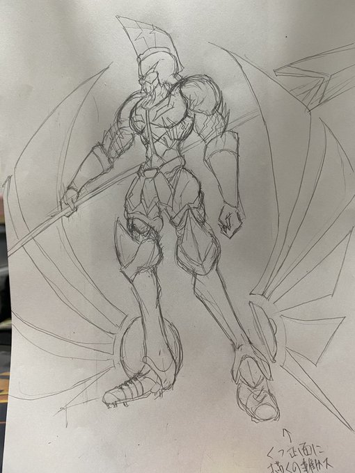 唐突な落書き衝動に駆られて アキレウスモン描きやしたー んやけど靴描けん難しすぎる😎 陸上部やったけど靴描けん(関係ない #デジモン #ラクガキ