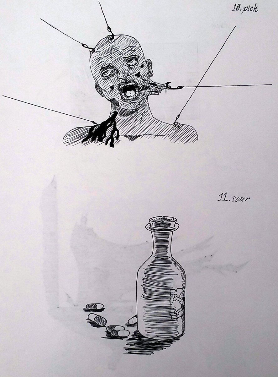 Well, it's only fair to start sharing what I've been working on for this year's #Inktober. I've been challenging myself to make my sketches macabre without delving into slasher/gore territory. #Inktober #inktober2021day1 #inktober2021day3 #inktober2021day4 #sketch #inktober2021
