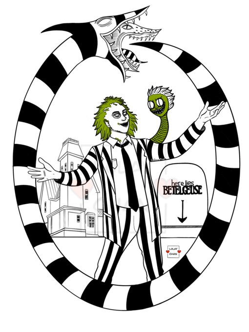 👻IT’S SHOWTIME! 😈 Here is the fourth character: #Beetlejuice 💚🤍🖤 Have you seen this movie? #digitalart #inktober2021 #Inktober #Halloween #spooky #Procreate #sixhalloweenfanarts #characterart