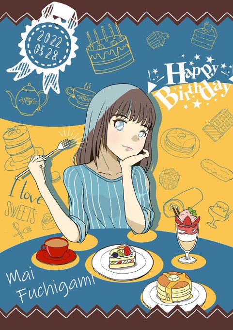 渕上舞さんお誕生日おめでとうございます!! 今年もまいまいらしく楽しく充実した1年をお送りください〜。新たな挑戦もめっちゃ期待してます! 今年イラストのテーマはスイーツ大好きお姉さんですw #渕上舞 #渕上舞誕生祭 #渕上舞誕生祭2022