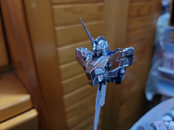 この前のRGじゃないです アレの股関節の修復が難航していて 現実逃避も兼ねてこちらを制作しました 一応全工程完成しましたが メッキ塗料の完全乾燥は時間かかるのでこれから2週間くらい接触禁止です #ガンプラ #ガンプラの画像貼るとRTされると聞いて #ガンプラ好きな人と繋がりたい