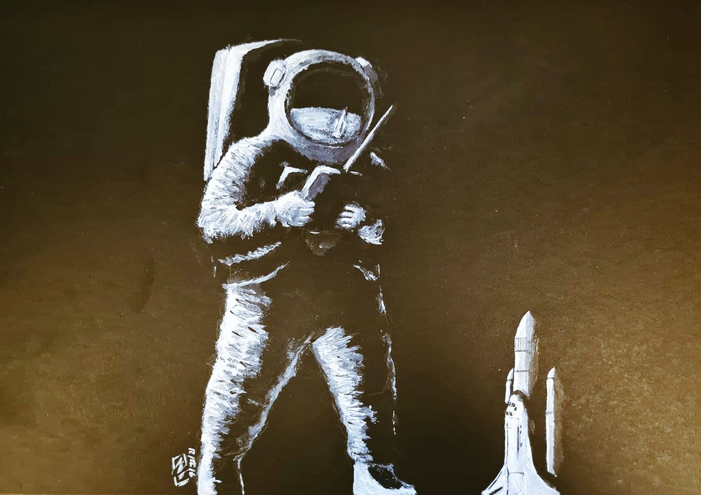 The Dream of the Space Age (acrylic) #art #ArtistOnTwitter #artph #acrylic #acrylicpainting #NASA #astronauts