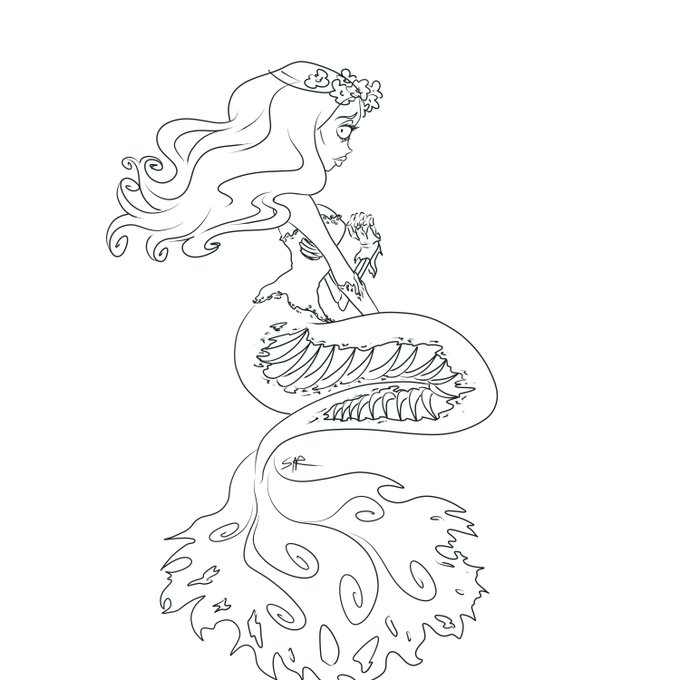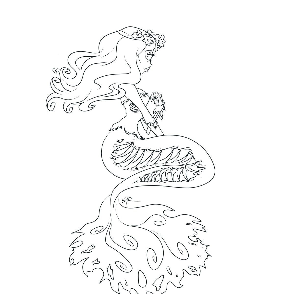 Unfinished Corpse Bride Mermaid I worked on back in May for MerMay. Probably won't ever get around to finishing it lmao #myart #CorpseBride #Emily #Mermaid #MerMay #TimBurton #Sketch #digitalart