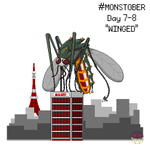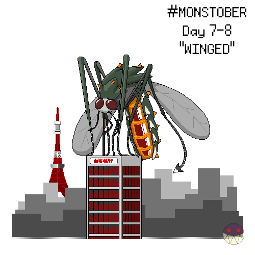 New entry for @BeastSoulArt's #monstober2021. Days 7 and 8's theme: "Winged" (presenting the kaiju Ryuka, flying to every blood bank across Japan). #monstober|#inktober2021|#inktober