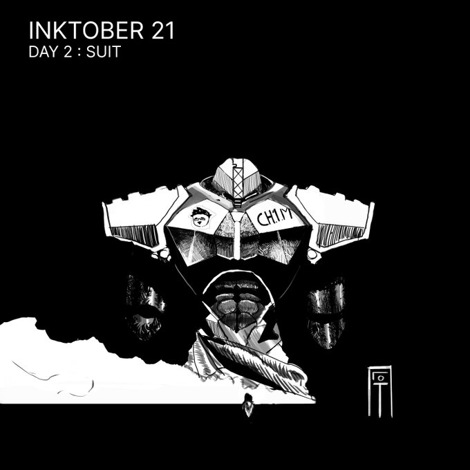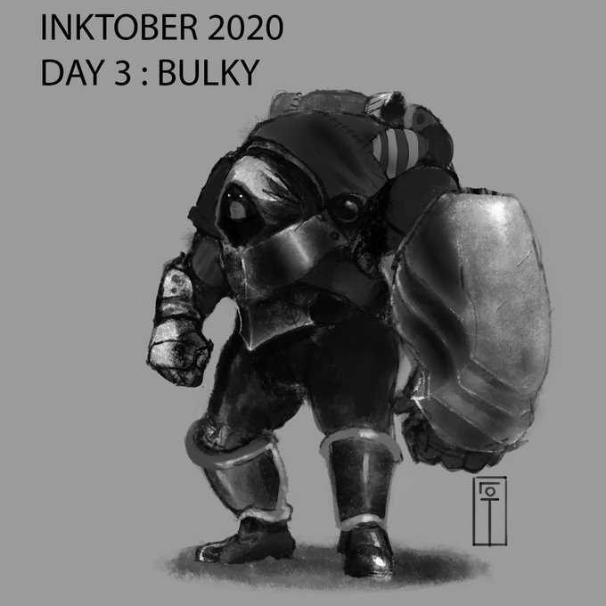 #inktober2020day3 : Bulky I'll call this one Igor #inktober #inktober2020 #Inktoberday3 #creaturedesign #bulky #iron #hood #fist #artistsontwitter #art #drawing #photoshop #digitalart #blackandwhite #texture