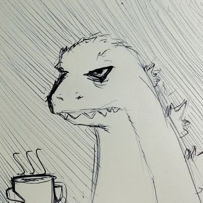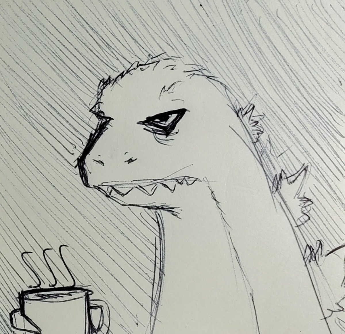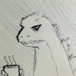 0 2 Godzilla needs coffee. #Godzilla #inktober2021 21/10/28 09:41