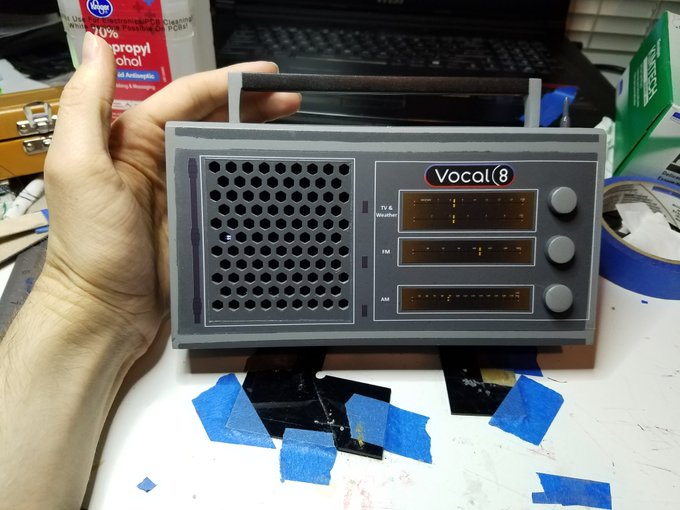 Like a month delayed post, but I finished my #Boneworks #3dprinting radio for my #cosplay. Painted, decaled, fits the BT speaker well and ready to accompany you through the dark secrets of MythOS!
