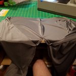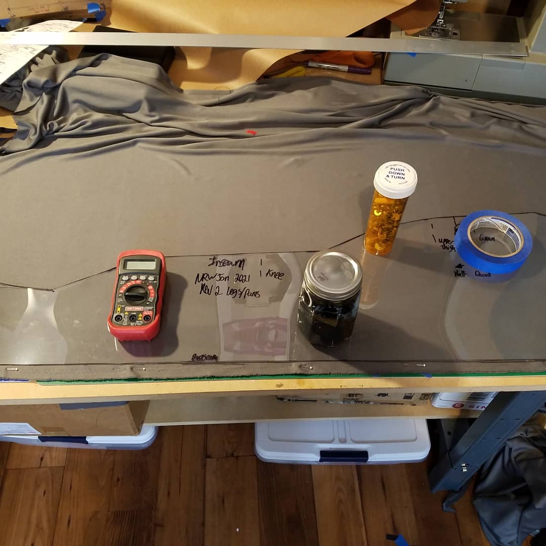Ep6, Rev 2 of the leggings/pants are drafted, sewn, etc! Fits much better than rev1 & I did some fabric paint tests to see how the fabric will hold paint/color matching for the final fabric print. I think I'm all set to sew on the final fabric! #cosplay #sewing #boneworksvr
