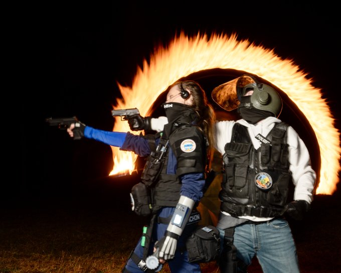 "There was a FIRE FIGHTTTT!" Or alternatively (Masq's idea): STAND NAME: 「AMERICAN IDIOT」 @_masqu3 and I shooting it up. 📸 @images_by_geo #R6Community #RainbowSixSiege #cosplay