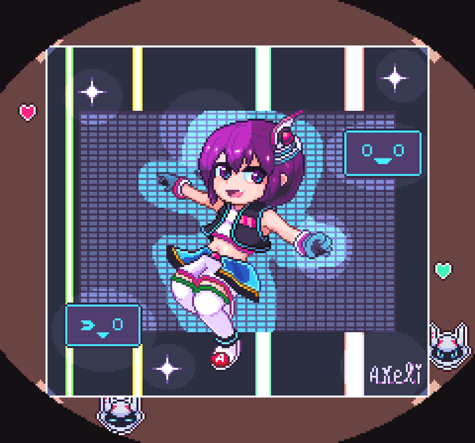 【作品】 -Axeli 的 夏季新衣裝 充滿活力的 Pixel偶像服!- 「從bit累積起的愛,在這裡毫無保留的獻給你喔!」 今天也會努力著的! 遊戲的主角就是你! |#pixelart #ドット絵