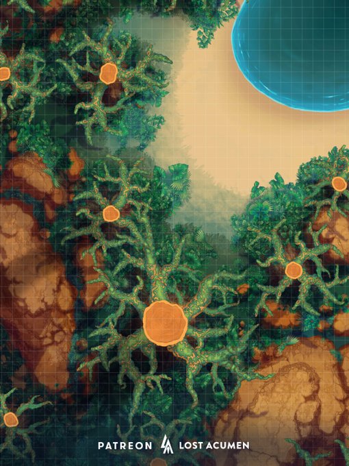 Here’s a lower level branch system #battlemap. Walk on the jungle floor? Or up in the trees? Which do you think is safer? ⚔️ #dnd #dndart #ttrpgfamily #DnDArtist #dndmap
