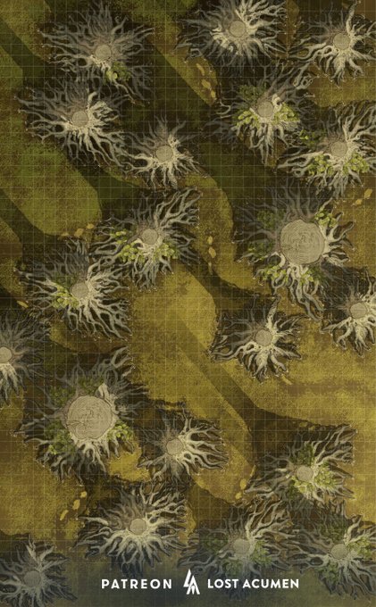 Ancient twisted roots and dark swamp water. A perfect place for Giant Alligators, Stirges, and planning an ambush. 🐊 #dnd #dndart #ttrpgcommunity #battlemap