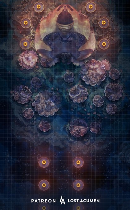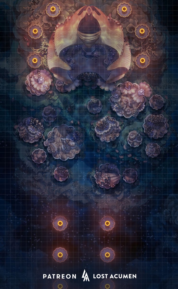 I think this may be one of my favorite variations on the Decorator Crab battlemap. I like how the colors and surface water details turned out. #ttrpgcommunity #dnd #rpgart #illustration