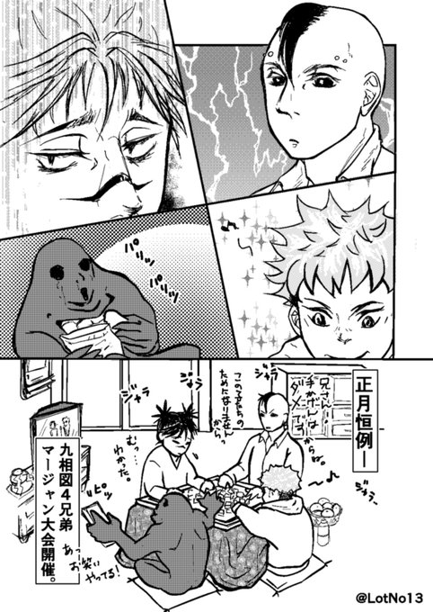 #お兄ちゃんワンドロ お題『お正月』 もう1枚投稿すみません💦どうしても麻i雀と絡めて描きたかったので❗勝負に甘い長兄と厳しい次兄。どちらも愛ゆえ。9⃣兄弟のオンリーとかあったら参加したいなぁ。宜しくお願いします🙏