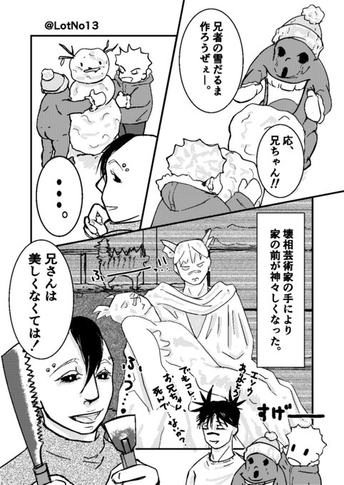 #お兄ちゃんワンドロ お題『お餅』 ⚠九i相i図兄弟⚠幸せな世界軸の現パロ 鏡開きです🍊ここまで描いて餅つきでも良かったじゃん!と思いました。久々に参加したら上げ方間違えて上げ直しです💦すみません❗️宜しくお願いします🙏