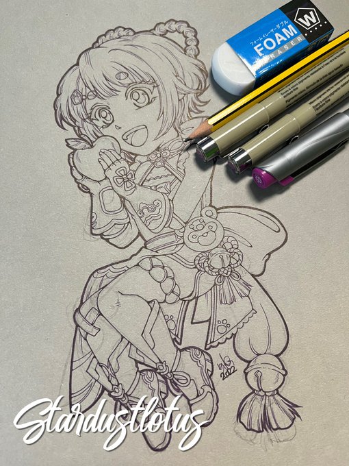 Xiangling enjoying a delicious apple! Drew this for a coloured pencil test, think Stream will be next week 🥰 #GenshinImpact #Xiangling #fanart #traditionalart #apple #cute