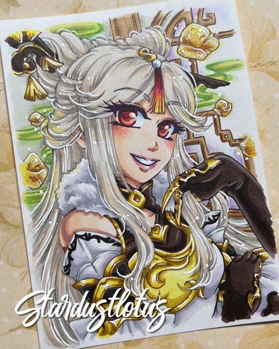 I had the pleasure to take part in a Genshin Impact ATC swap event, where I drew 4 cards in total. My last card was this portrait of my Geo Queen Ningguang ✨ #GenshinImpact #Ningguang #tianquan #liyue #traditionalart #fanart #portrait