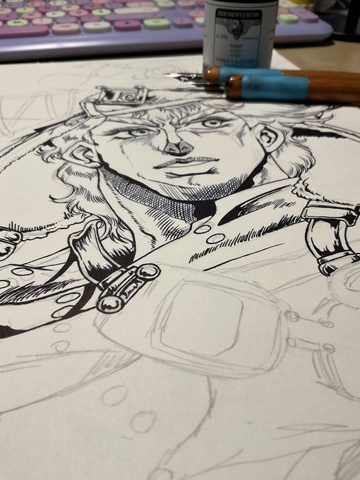 Finished the lineart of Jojo today 🥰 copying Araki-Senseis work has been really instructive and a new way of inking for me. I had a lot of fun and I can’t wait to put colour on this 💖 #jojo #JoJosBizarreAdventure #traditionalart #inking #fanart