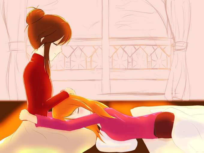 15 27 過去絵〜。お昼寝してる加蓮の近くに藍子が行ったら膝にずりずり擦り寄っていった加蓮の図〜 #蓮藍一斉 #ゆるふわ乙女にガラスの靴を #北条加蓮はあなたが育てるシンデレラ 20/05/13 21:36