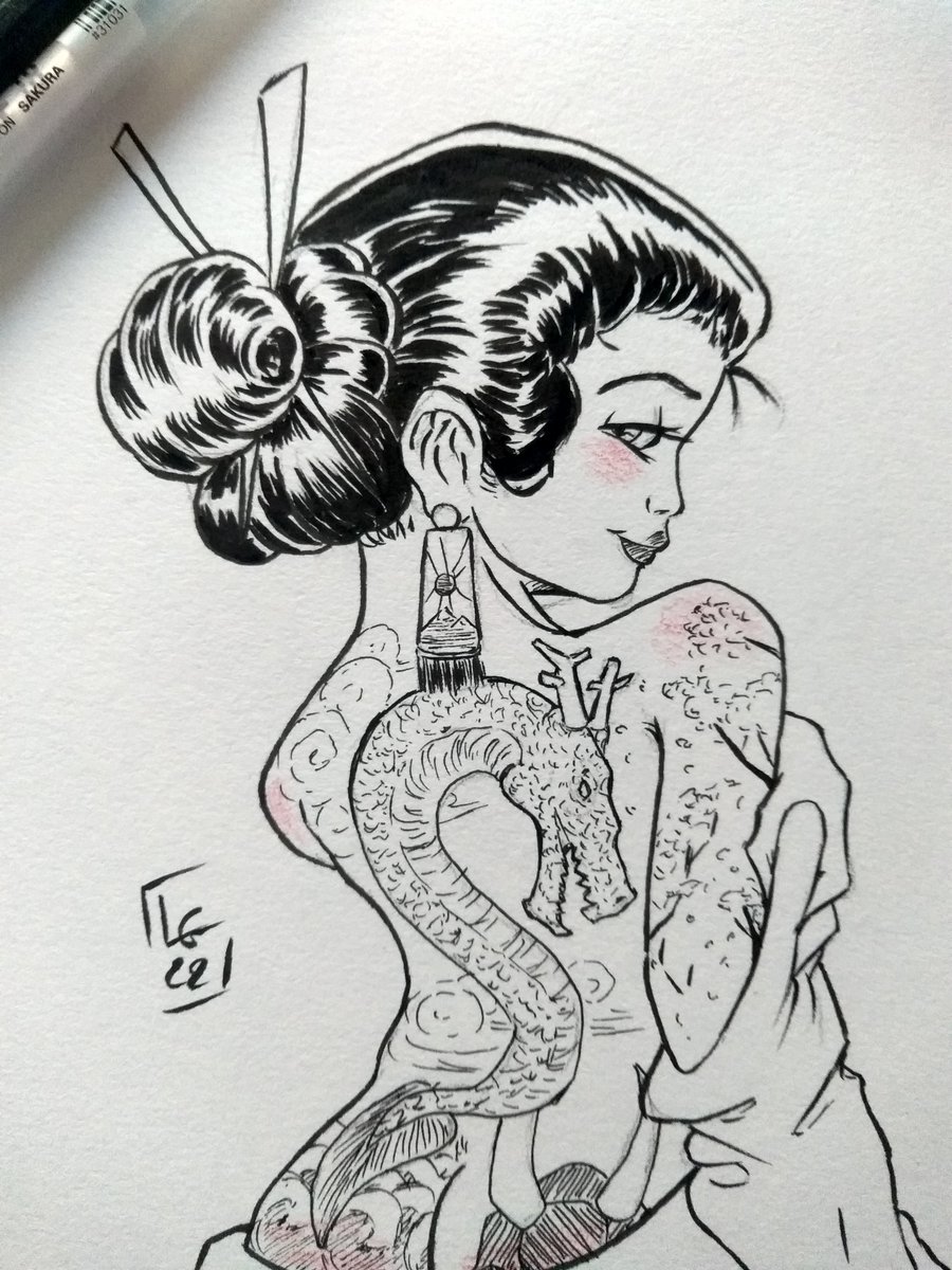 "The girl with the dragon tattoo" 🇫🇷 Jour 12 du #pinuptober de @deuza_art, thème : "tattoo" 🇬🇧 #pinuptober2022 day 12, theme: "tattoo" #art #dessin #drawing #inktober #inktober2022 #sexy #cute #tattoo #japan #japanese
