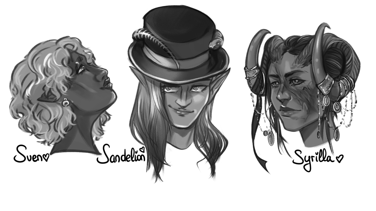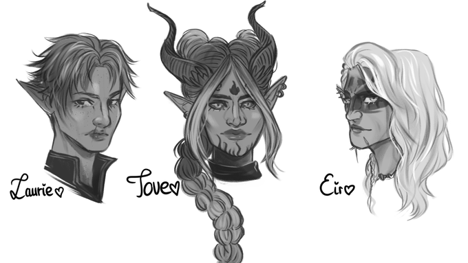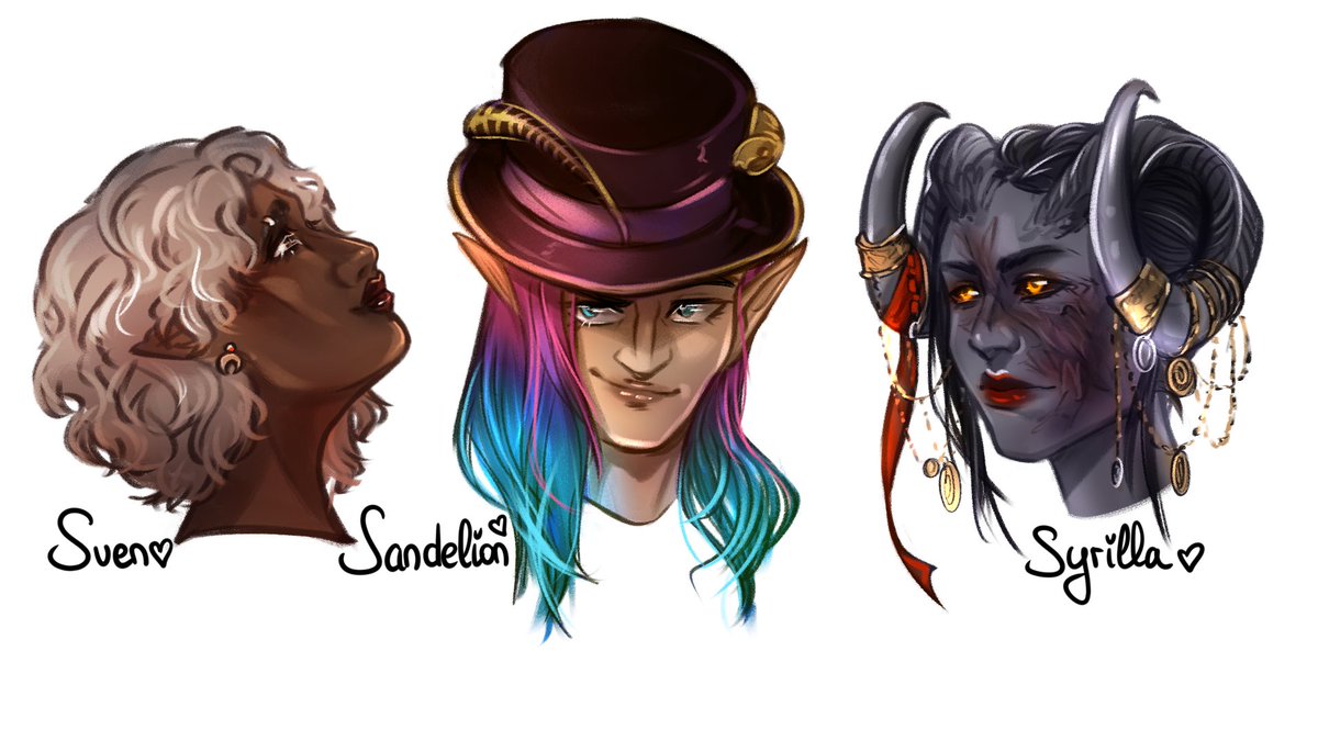 Some friends' Tav doodles! Laurie @yavelocities 💫 Tove & Eir @dragonagesimp ☄️ Sven @Marshsano 🌙 Sandelion @Moondustocean 🐍 Syrilla @lionslavellan 🪙 I hope you like them! QWQ It's always an honour to draw your OCs 🫶🥺 #BaldursGate3 #BaldursGate3Fanart