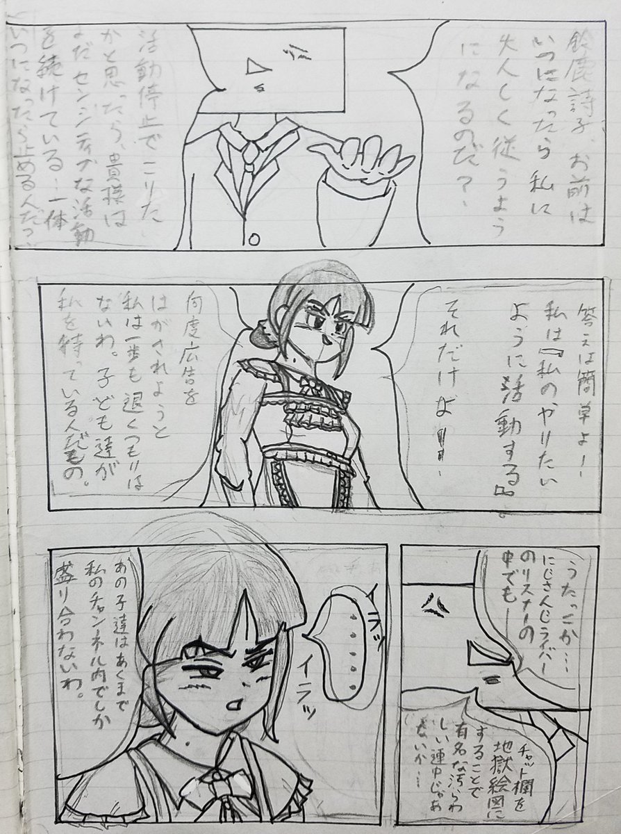 自分としては理想には程遠いけど、とりあえず完成という事で。 しっかしアレだね。 線が引いてあるノートに絵を描くのはやっぱ駄目だね。 #詩子あーと