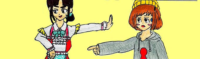 新しいヘッダー画像。 塗りが汚くなってしまったのと、2人の肌が色白じゃないのが悔しい。 #詩子あーと #妹子あーと