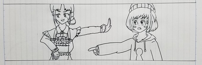 6 16 自分としては理想には程遠いけど、とりあえず完成という事で。 しっかしアレだね。 線が引いてあるノートに絵を描くのはやっぱ駄目だね。 #詩子あーと 19/08/16 13:46