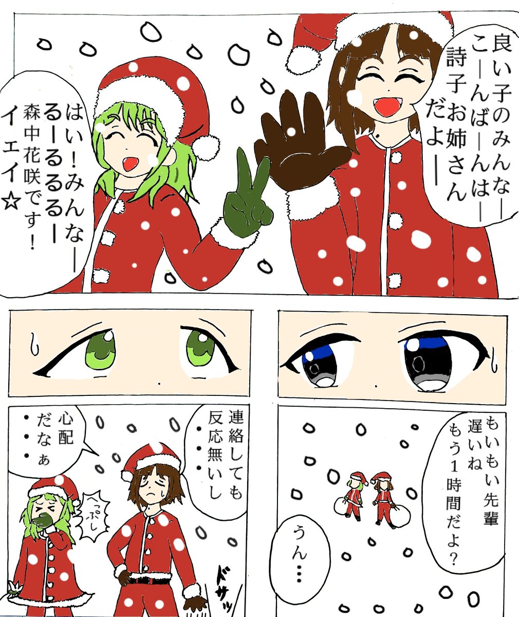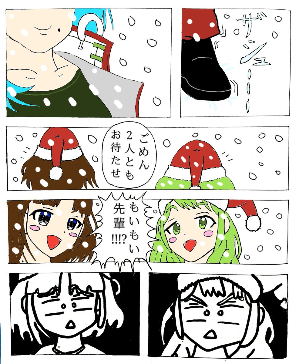 X'masには間に合わせたかった…(モイラ様とかざちゃんは初描きです) 。 【もいもい先輩の奇妙なサンタコス】 #もいもいらすと #詩子あーと #森中びじゅつかん #BGクラブ