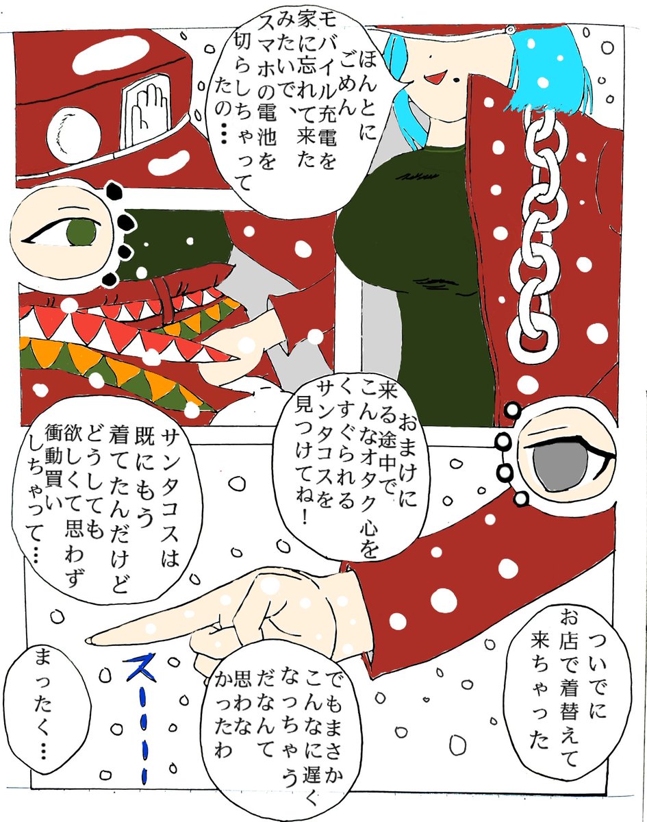 30 105 X'masには間に合わせたかった…(モイラ様とかざちゃんは初描きです) 。 【もいもい先輩の奇妙なサンタコス】 #もいもいらすと #詩子あーと #森中びじゅつかん #BGクラブ 19/12/26 11:16