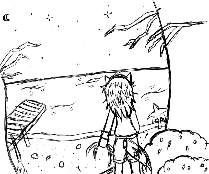 Just a drawing I did on medibang of my oc Lyra the fox at a abandoned beach, quiet and beautiful, looking at the night sky #medibang #Lyrathefox #oc #digitalart